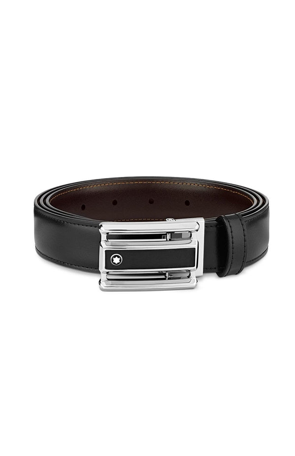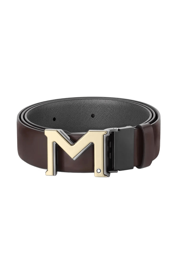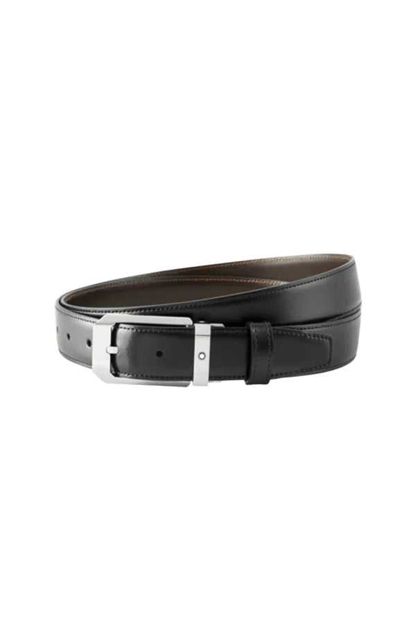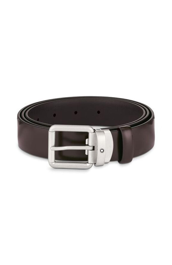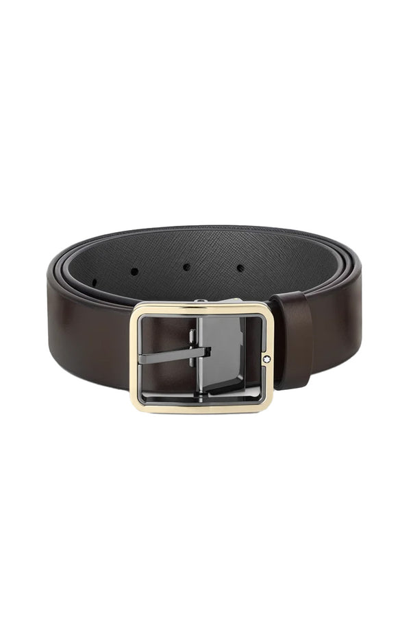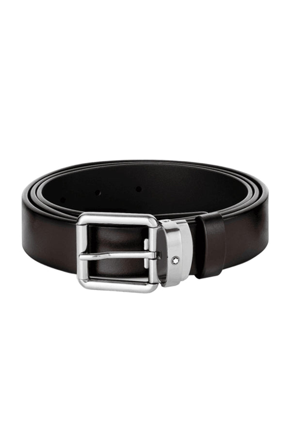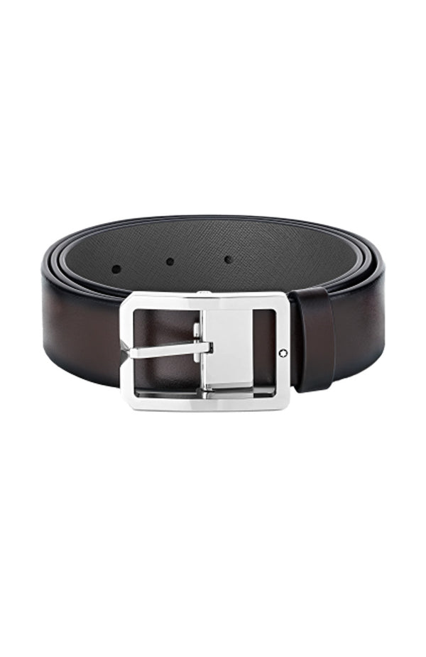حزام جلدي قابل للعكس من مونت بلانك أسود/بني مقاس 35 مم