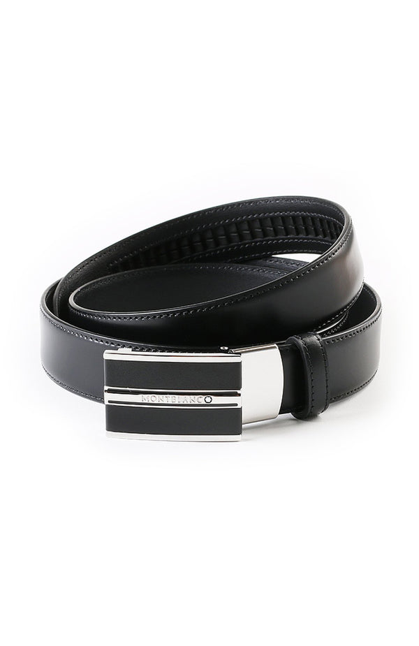 حزام جلدي مونت بلانك أسود 30 مم من الفولاذ