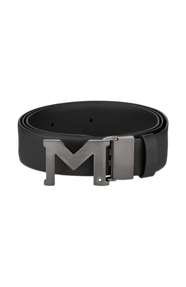 حزام جلدي قابل للعكس من مونت بلانك أسود مقاس 35 مم