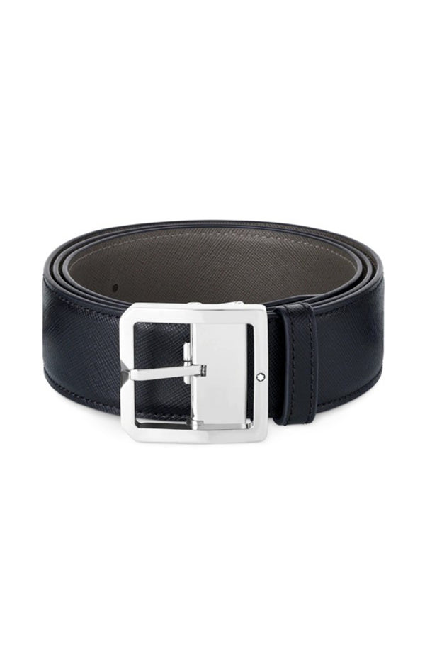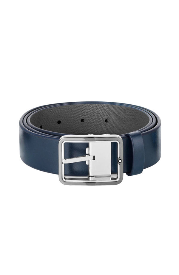 حزام جلدي قابل للعكس من مونت بلانك أزرق/أسود مقاس 35 مم
