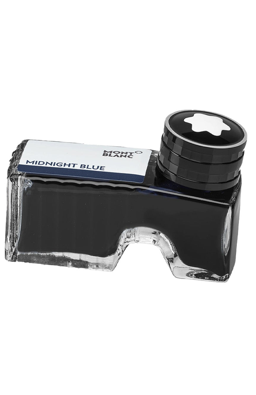 زجاجة حبر مونت بلانك سعة 60 مل، باللون الأزرق الداكن. زجاجة حبر مزودة بحجرة أمامية لتفريغ البقايا فيها.